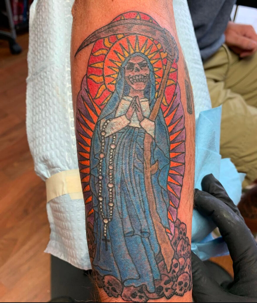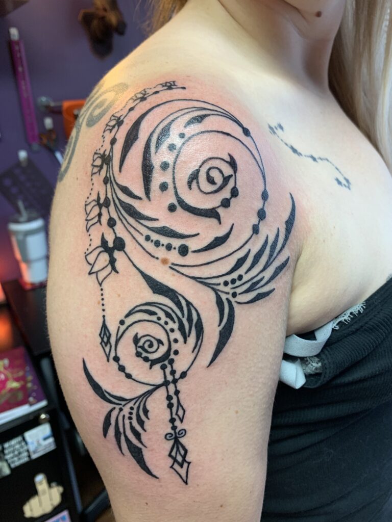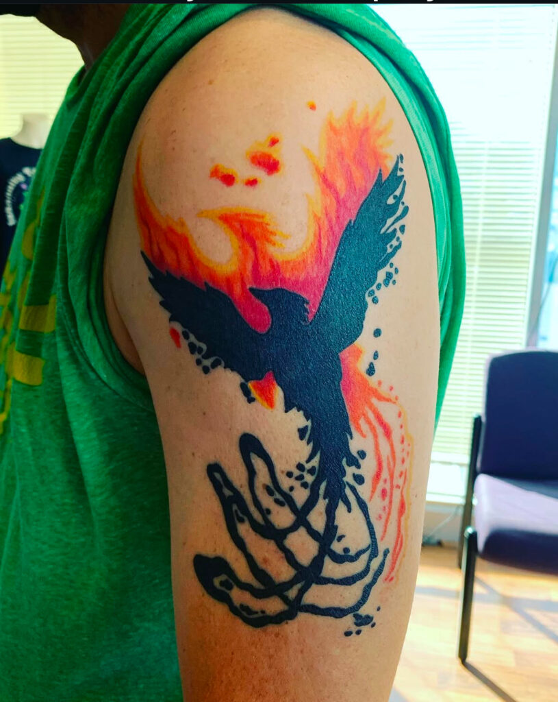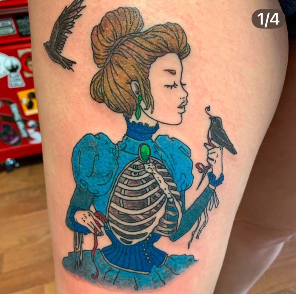 My artistic journey began straight out of high school when I launched a sign and graphic design business—laying the foundation for a lifelong love of bold visuals and creative storytelling. After years in design, I naturally transitioned those skills into tattooing, where art meets skin and every piece tells a story.